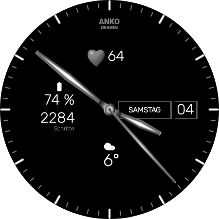 • Um in die Einstellungen auf der Smartwatch zu kommen, lange auf die Mitte der Uhr tippen.